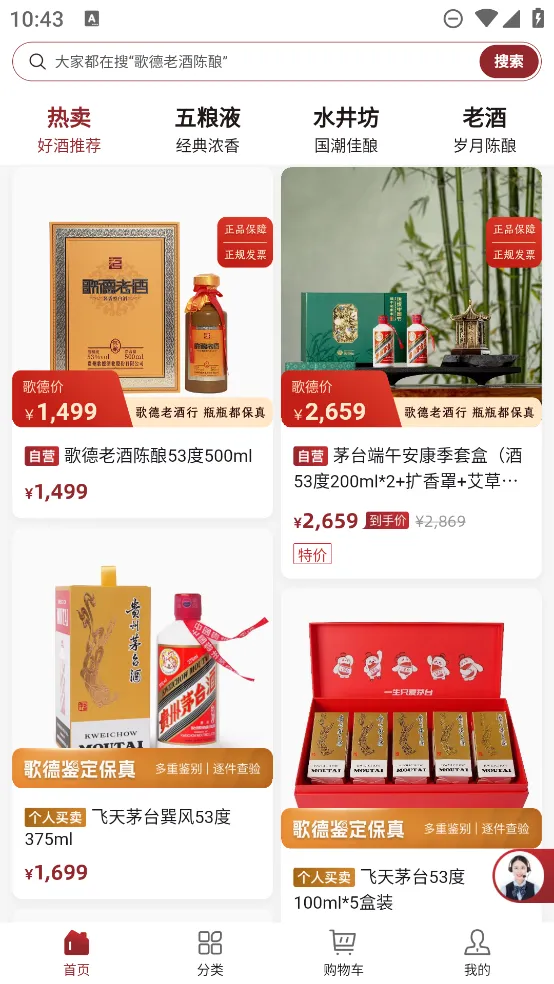 1、商品丰富度高:歌德(老酒购物社交)提供丰富的老酒品种,涵盖名酒、珍藏酒、顶级酒、酒坛等多种类型,还有美食美酒、进口食品,能满足不同用户的选购需求。
