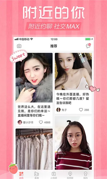 1、交友便捷:草莓约2025官方最新版本能根据用户当前定位,精准展示周围单身异性,还会依据兴趣爱好推荐潜在约会对象,大大增加了交友成功率,让用户轻松找到合适的人。