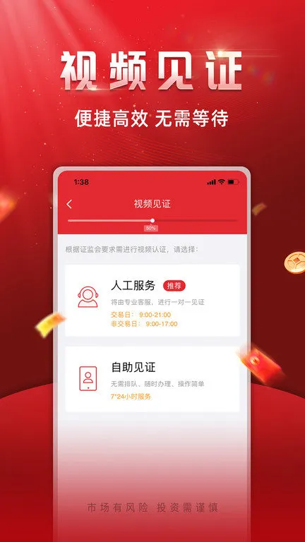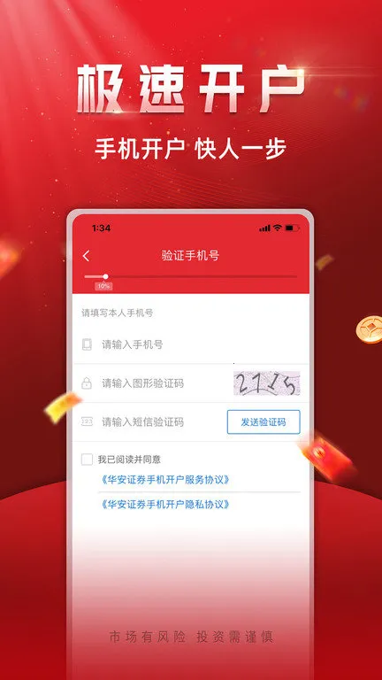 1、开户便捷:华安证券安卓版手机版开立理财账户无需视频认证,用手机、身份证、银行卡快捷注册就行,还能3分钟极速开户,真正足不出户轻松搞定。