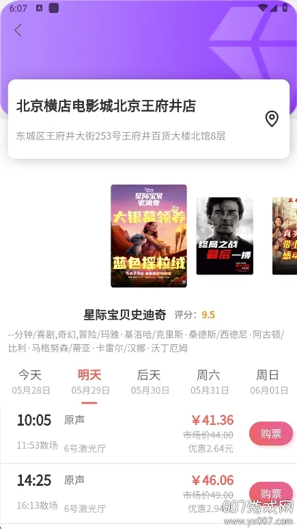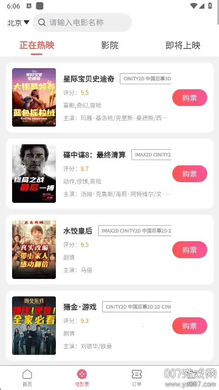 2、广泛影院覆盖:覆盖全国8000多家影院,用户选择空间广泛,能轻松线上买票,还可按城市、时间、电影类型等条件筛选,找到合适场次。