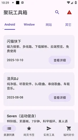 1、聚玩工具箱App是一款功能丰富的安卓手机工具箱,整合1000多个实用网站,涵盖各类资源内容,能全方位满足用户多样化需求。