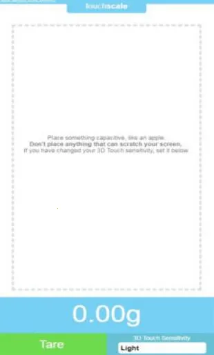 4、体验良好:软件模拟出完整功能的电子秤,界面真实新鲜,完成任务还有新乐趣。不过它有一定限制,仅支持带3D touch功能的手机,且物品不能太重,以免损坏手机屏幕。
