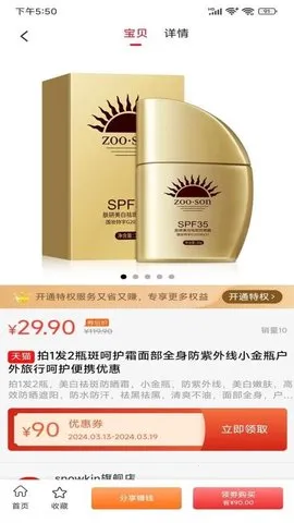 4、该应用操作简单,打开APP通过分类导航或搜索栏找商品,进入详情页查看信息、搜券领券后下单。还支持多平台优惠券同步,适用于淘宝、京东等平台。无论是日常囤货还是副业创收,都是实用之选。