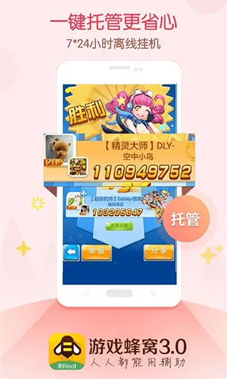 游戏蜂窝app免Root版是免费的游戏辅助工具,功能强大,操作简单,无需Root。有游戏托管、云挂机服务,海量脚本随意选。还能获取游戏资讯攻略,适配多数机型,保障安全。