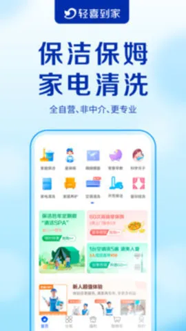 轻喜到家2025官方最新版本是全自营专业生活服务平台,利用多种技术结合家庭需求,提供保洁、保姆、家电清洗等全生命周期到家服务,售后完善,员工考核严、培训专业。