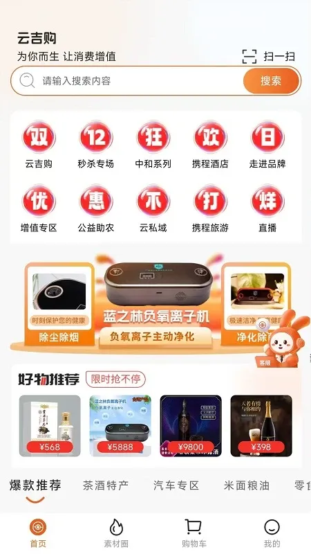 云吉购是整合国内主流电商资源的综合电商平台,商品丰富,分类精细,界面简单。能实时查物流,客服在线,还有社交分享社区。提供直播、酒店预定等服务,每天有特价,购物体验便捷安心。