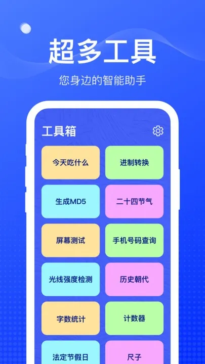 周到工具箱是海南澎格科技推出的多功能手机工具,集日常查询、设备辅助等功能于一体。操作简单,即点即用,内置丰富免费工具,涵盖多领域,界面简洁无广告,体积小不占内存。