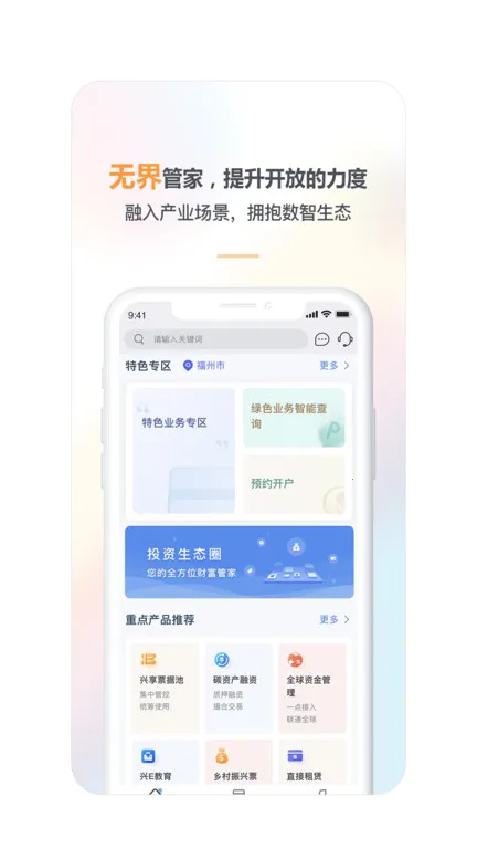 兴业管家是一款超棒的金融管理平台,专为个人和小微企业打造。它能让你随时查看财经资讯、理财产品推荐和投资建议,轻松掌控财务状况。