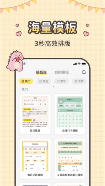 2. 拥有海量模板,涵盖追剧追番记录、康奈尔笔记、工作日志等各类,笔记一键排版,提高效率。