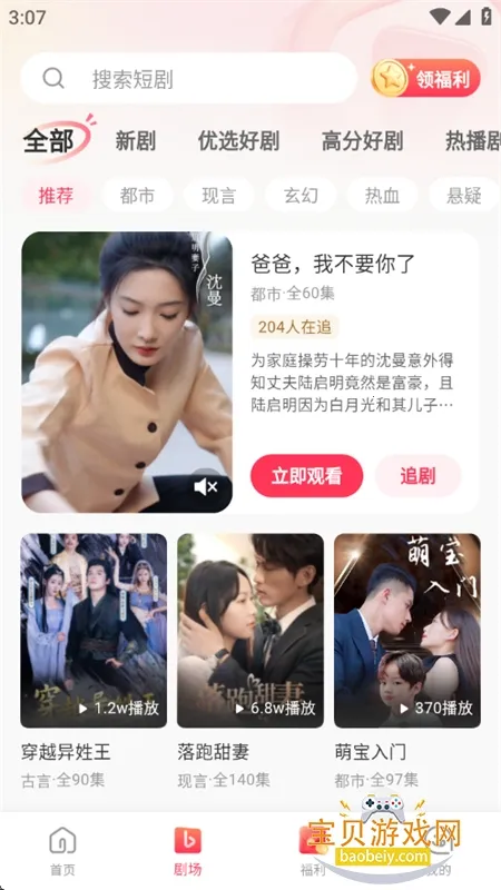 2. 全部短剧高画质呈现,带来极佳视听感受,让用户沉浸其中。