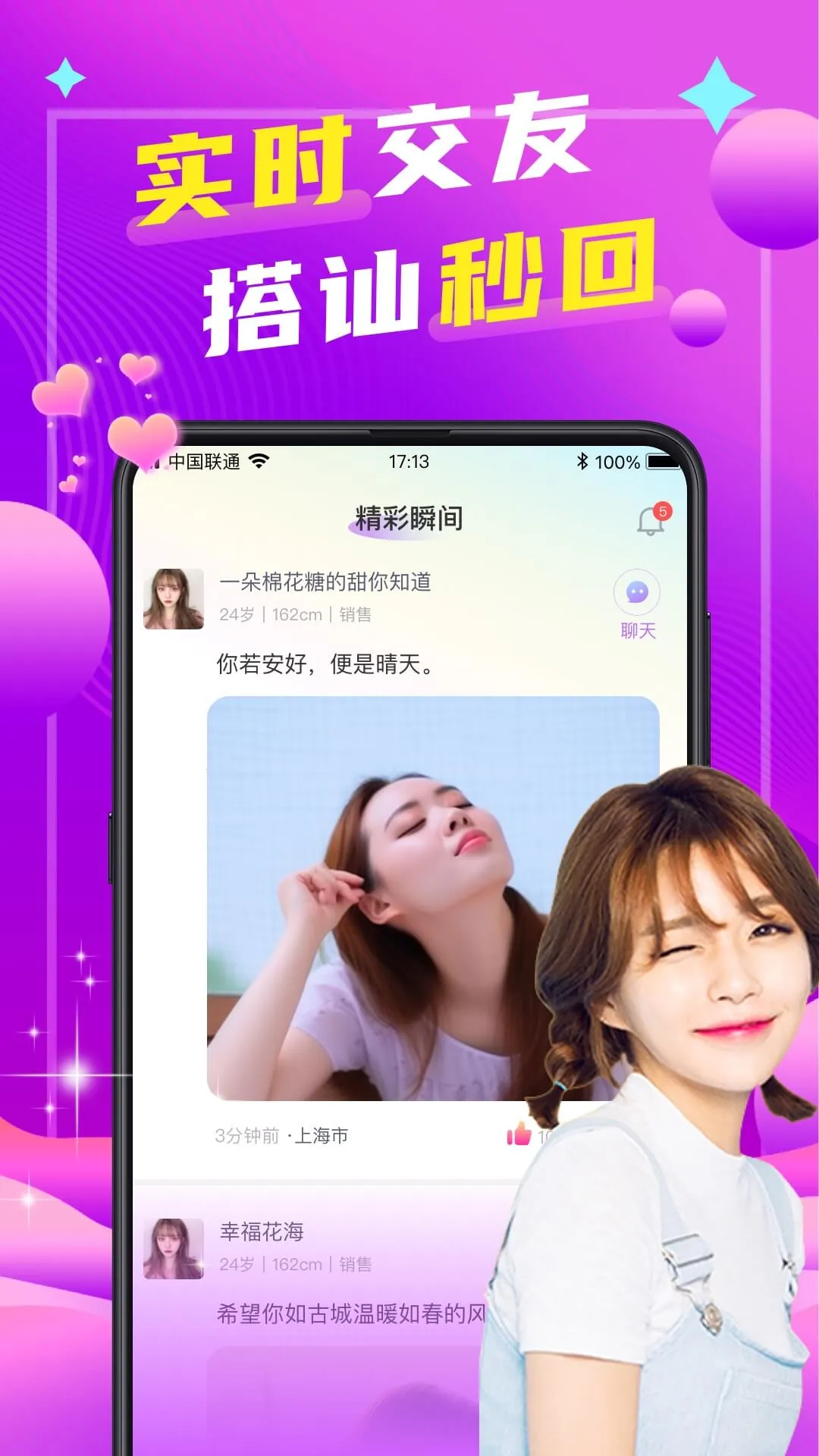 在这里,能随时找到身边单身异性,自由聊天交友。