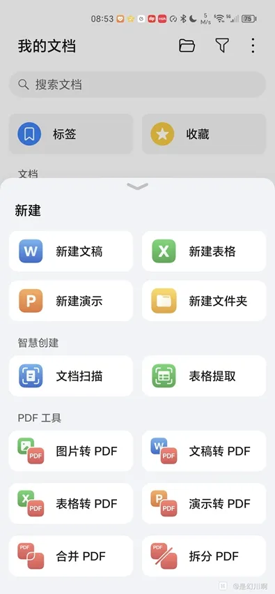 它的功能超实用。智慧创建可一键扫描提取纸质表格生成Excel文件,节省录入时间。轻松编辑支持手写,文字公式能智能转文本,还能全局批注修改。实用工具里有免费的PDF转换合并拆分功能。智能管理能自动归集QQ、微信、浏览器等应用下载的文档,按类型分区收纳,查找效率提升3倍。