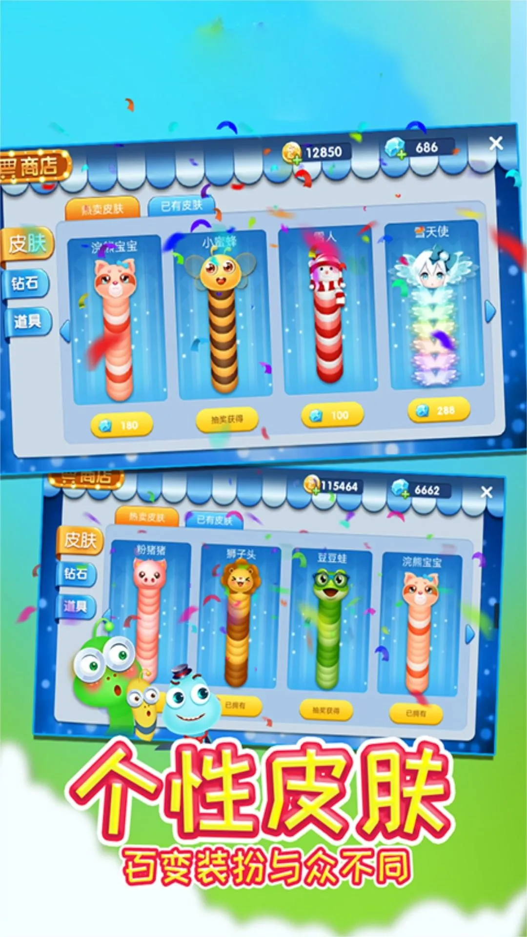 竞技求生贪食之蛇2025官方正版,无广告。玩法独特,可控制蛇走位、吞噬生物,自定义按键布局,还有多种道具技能。地图随机,赛季多样,能自由定制皮肤,在线竞技,在缩小区域内求生。