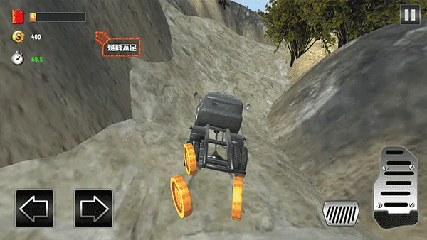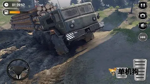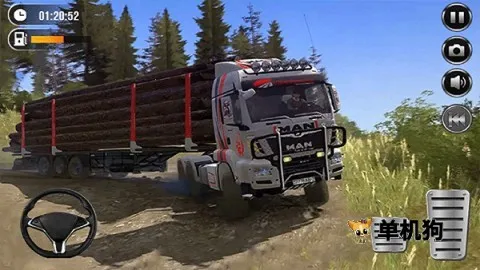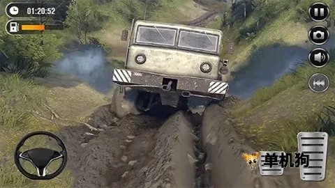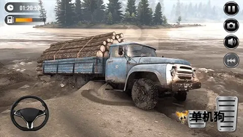 4、运用虚拟方向盘来控制卡车的行进方向,右侧踏板区域负责油门与制动。当遇到陡坡时需切换低速档,泥泞地段要保持匀速行驶,以避免卡车陷入险境,按时到达目的地即可完成任务。