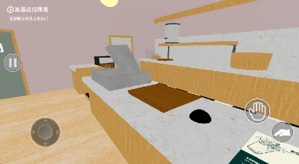 1. 游戏操作简单,以第一人称呈现,代入感强。左下角摇杆负责移动,视野中央十字对准物品后,通过右侧手掌键进行互动,如翻转告示牌等。