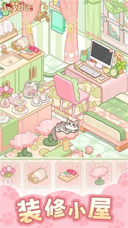 绘梦日记2025最新版本是一款融合模拟经营、自由装修、少女换装的治愈游戏。玩家跟随魔法小猫进入破旧小店,翻新经营,自由打造风格各异的温馨空间,解锁多样时装,享受慢节奏的治愈时光。