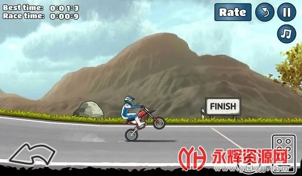 3. 控制摩托车平衡,指尖操作轻松驾驶,在困难轨道上展示杂技动作,乐趣无穷。