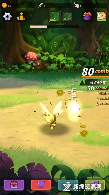 4. 有探索任务模式,能发现森林宝藏,击败各种怪物,小心怪物突袭,掌握道具强化实力。
