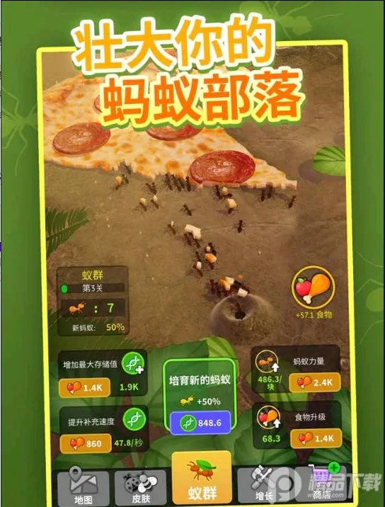 在《小小蚁群》这款模拟经营游戏里,解锁皮肤的方法来啦!游戏中各种不同种类的蚂蚁族群都能解锁,多样独特的造型和皮肤十分有趣。当你不断完成更多挑战和任务,满足一定条件后,就能让蚂蚁帝国持续运转,进而解锁更多皮肤。比如随着蚁群等级提升、地图不断解锁、资源持续采集,在这个过程中,你会有机会获得各种独特皮肤。而且游戏玩法丰富,能让你体验到从一只孤独蚂蚁发展成庞大帝国的乐趣。在这里,你以上帝视角掌管蚁族生存,指挥它们收集食物、战斗防御。解锁皮肤不仅能让你的蚂蚁们更加个性,还能增添游戏的趣味性,让你更有动力去发展壮大自己的蚂蚁帝国,快来试试吧!