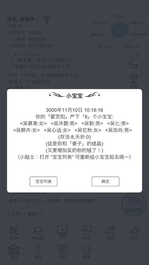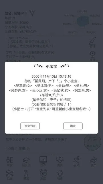2. 家庭背景随机产生,智商、颜值等也随机,每次体验都是不同人生,还有各种随机事件,抉择不同人生轨迹就可能改变,充满惊喜与未知。