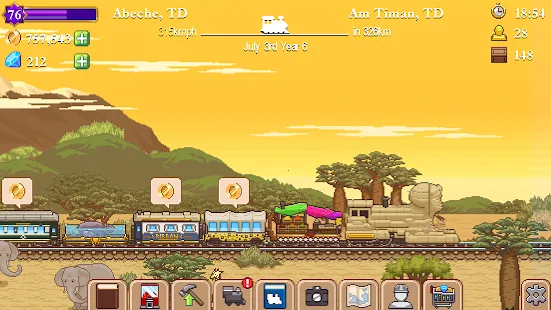 3. **画面与音乐出色**:采用精美的像素艺术风格,画面精致。搭配令人舒适的音乐,营造出独特的游戏氛围。在这样的环境中经营铁路、环游世界,无论是积极游戏还是挂机,都能带来轻松愉悦的体验,让人沉浸其中。