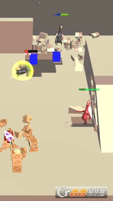 3. 道具丰富,如加特林、汽油罐、香蕉皮等,可利用机关道具戏弄好友,炸飞对手,道具还能恢复血量、炸毁障碍物。