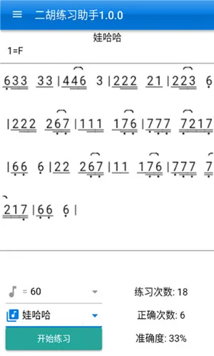 3. 该版本能帮助用户调好二胡音准,更便于练习。选择练习模式和曲目后,可根据数据查看准确度和分数,是实用的二胡辅助软件。