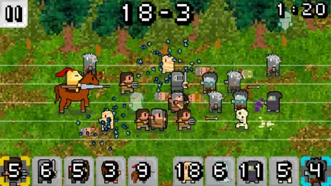 3. **队伍丰富多样**:除分数模式外还有无尽生存模式,满足条件可解锁更多队伍,如中古骑士大战忍者、僵尸队等,各支队伍特质不同,支持两人同屏对战的多人模式。整体玩起来有意思,虽与大作有差距,但作为玩票之作值得表扬。