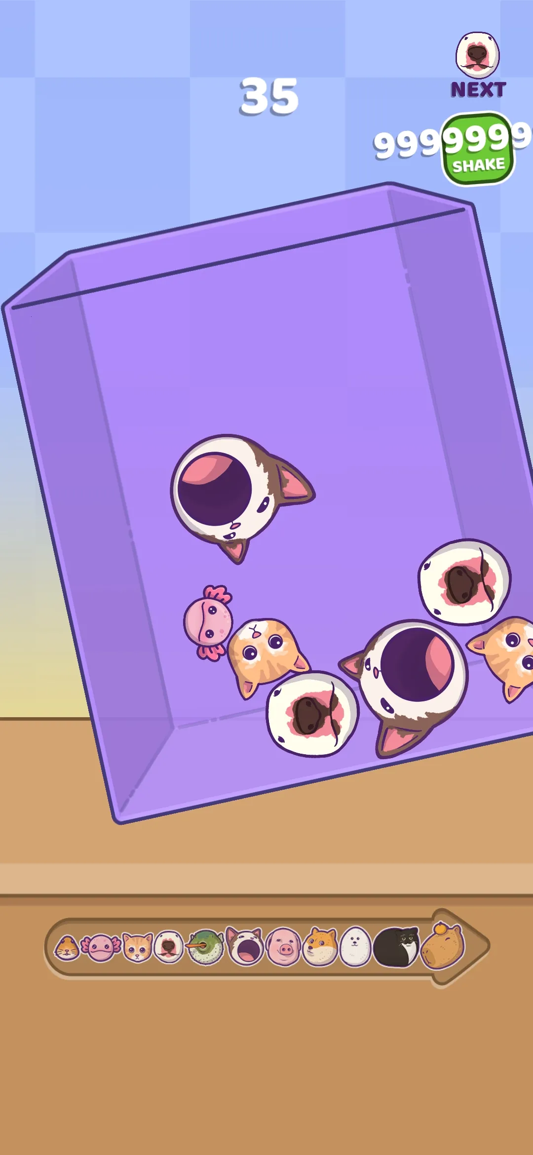 3. 拥有多种游戏模式,如小伙子模式、水豚模式、猫模式和狗模式等,每种模式都有独特合并规则和目标,增添丰富玩法体验。