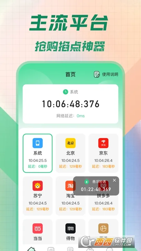 3、多渠道时间校准是一大亮点,涵盖多个平台服务器时间,包含网络延迟校准,抢购更精准。