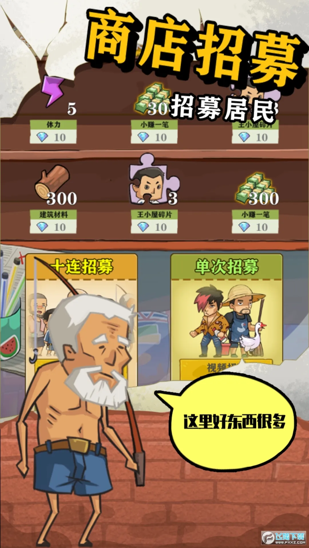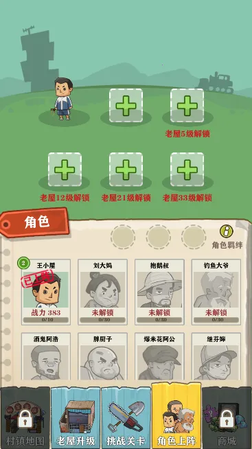 2. **剧情与角色**:有着乡土幽默接地气的故事背景,围绕王小屋保护祖传老屋展开。有丰富角色,各怀绝技,如环卫工、郑妈妈等,不同角色还有独特技能效果,他们相互配合能大幅提升实力,还有多样敌人带来不同挑战。