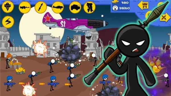 1. 游戏采用卡通画面设计,延续经典火柴人角色,全新对抗僵尸玩法带来不同刺激体验。