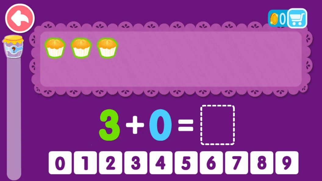 2. 关卡围绕核心数学概念设计,如通过放苹果进篮子学加法,分享蛋糕理解减法,让宝宝在解决生活相关小难题中学习。