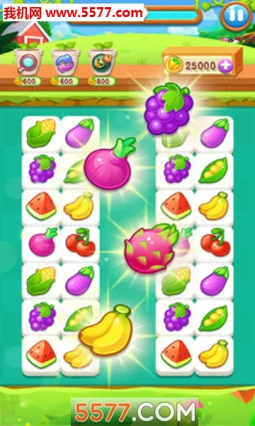 3. 关卡设计丰富多样,有多个不同难度的关卡等玩家解锁,玩法传统,触碰水果蔬菜消除相同的两个即可,过程轻松开心。