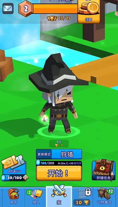 每当消灭猎物,拾取地面上的星星就能完成角色升级,升级过程中不仅能增加猎人的攻击能力,甚至还有不同的技能组合可供玩家挑选,亦如增加“攻击距离”,提升攻击“伤害”,或者是强化“经验值”,如何决定就要靠玩家摸索了!