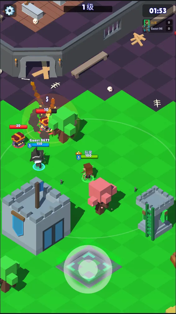 4. 游戏画面简洁,像素人战斗增添了轻松的游玩氛围。皇家狩猎是一款休闲大乱斗游戏,玩家与其他三名玩家进入狩猎场,通过击杀怪物提升等级获取技能,击败其他玩家获胜。游戏有30多位英雄可选,各有独特技能和多种攻击模式。操作简单,竖屏虚拟摇杆控制角色移动,在攻击范围停止自动攻击,消灭猎物拾取星星升级,升级可增加攻击能力并挑选技能组合。还有30多位猎人可供收藏使用,能通过尝试键进入试炼战场模拟战斗。