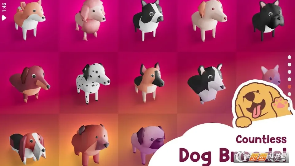 1. 玩家能选择不同品种小狗,从博美犬到金毛寻回犬,满足多样喜好。