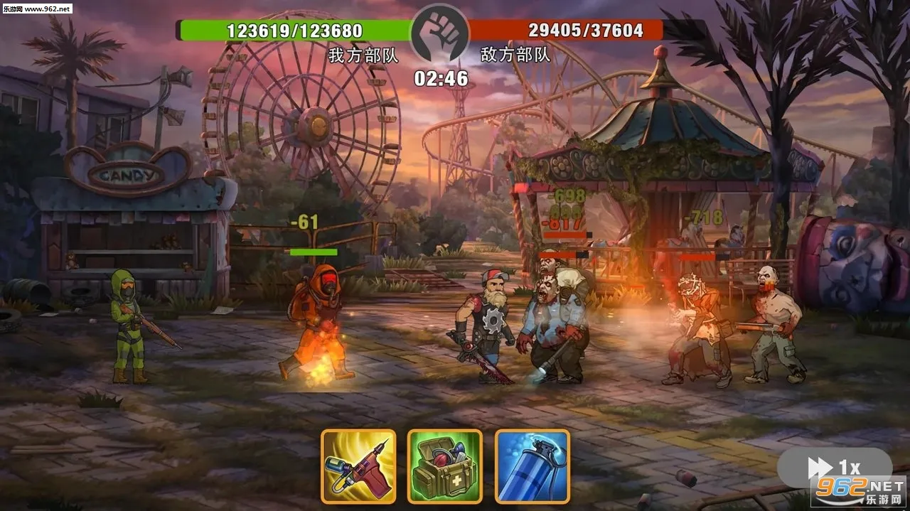 2. **战斗刺激**:要面对大群丧尸和疯狂变异人,进行数百场战斗。在竞技场锦标赛或进攻其他避难所时,与敌人激烈对抗,打造强大无敌小队压制对手。