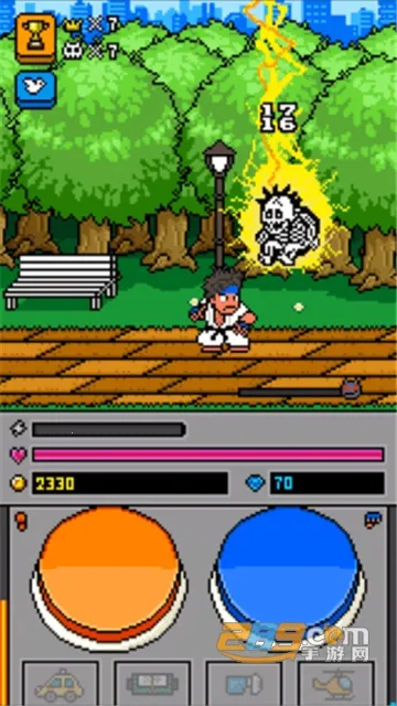 3. 采用传统格斗游戏横版风格,趣味性十足,加入跑酷元素,控制主角四处走动打败敌人。