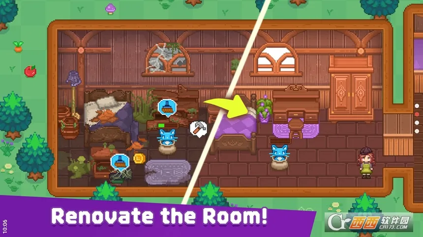 2、游戏画面具有独特的像素艺术风格,古董家具持续更新,符合玩家品味,带来别样视觉享受。