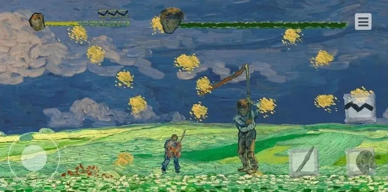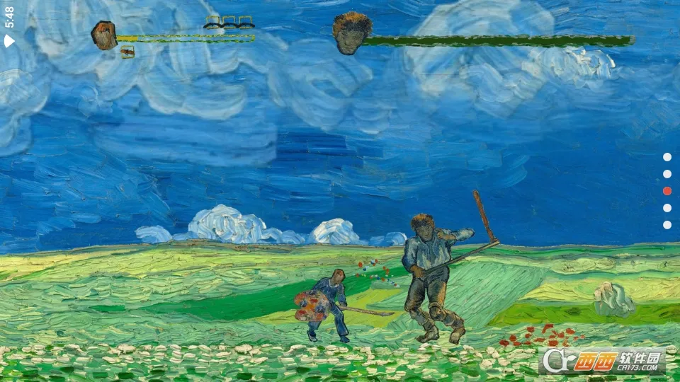 1. 印象派美术的数字化呈现,将梵高笔触动态化,星空旋转光影流动均符合原作意境,Boss设计融合画作元素,每帧画面都可截屏做壁纸。