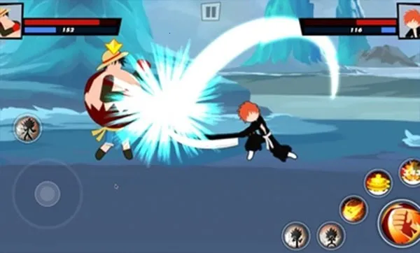 2. 角色玩法:能看到来自不同动漫的人气角色化身火柴人,在竞技场展开对决。每个角色有各自招牌技能,想要精通需一番练习。可在主界面点击hero按钮进入英雄列表,选择未解锁角色点击绿色金币按钮完成购买来解锁新角色。