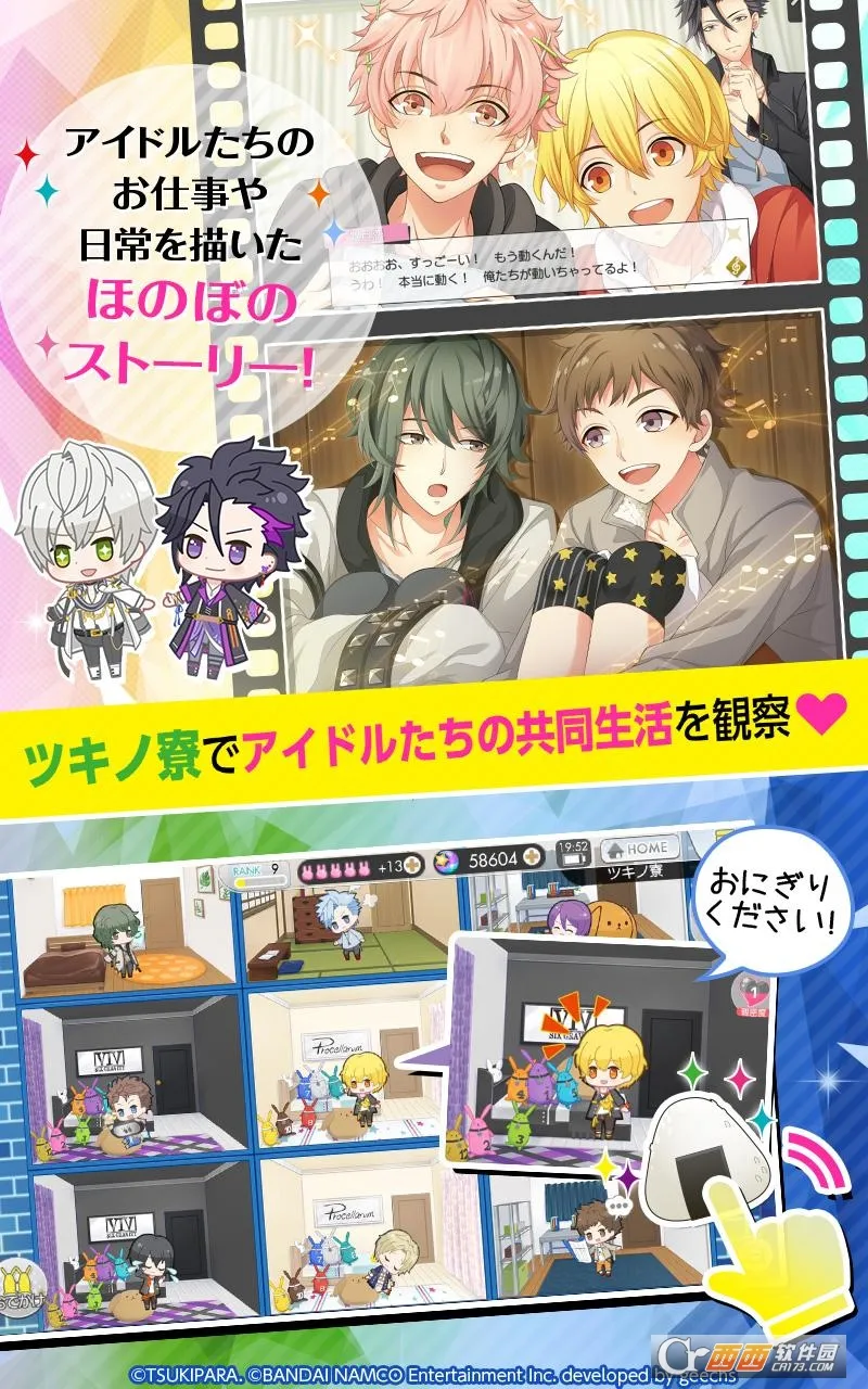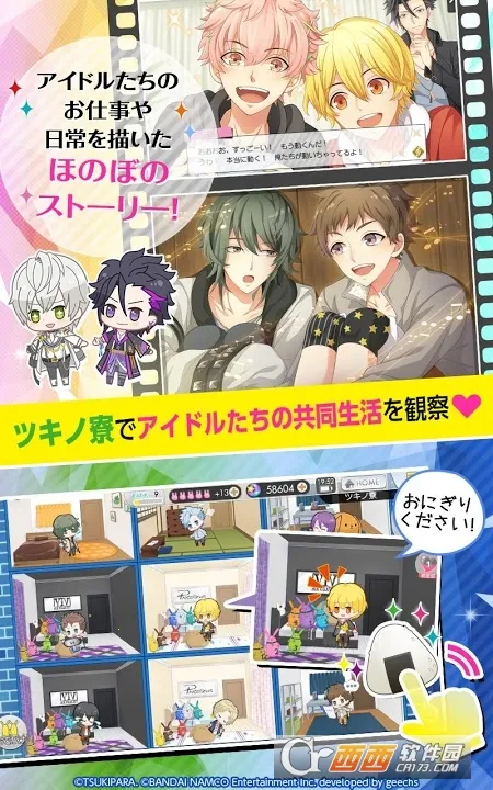 玩家以事务所主理人身份展开冒险,通过参与现场演出培育偶像,在月野寮中与他们亲密互动,最终打造顶尖人气事务所。