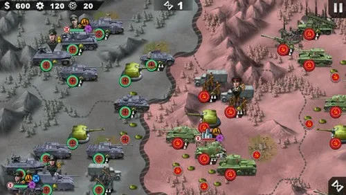 1. 游戏采用经典战棋回合制玩法,多样兵种克制烧脑对抗,带来强烈的战争冲击体验。