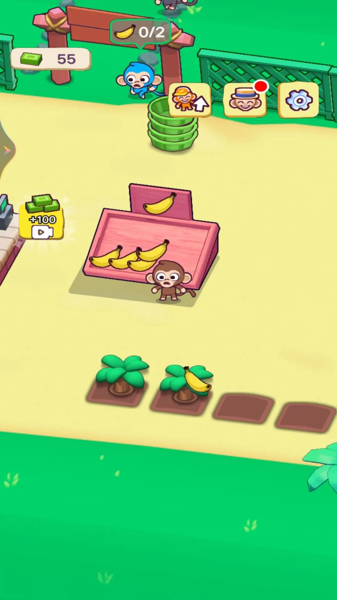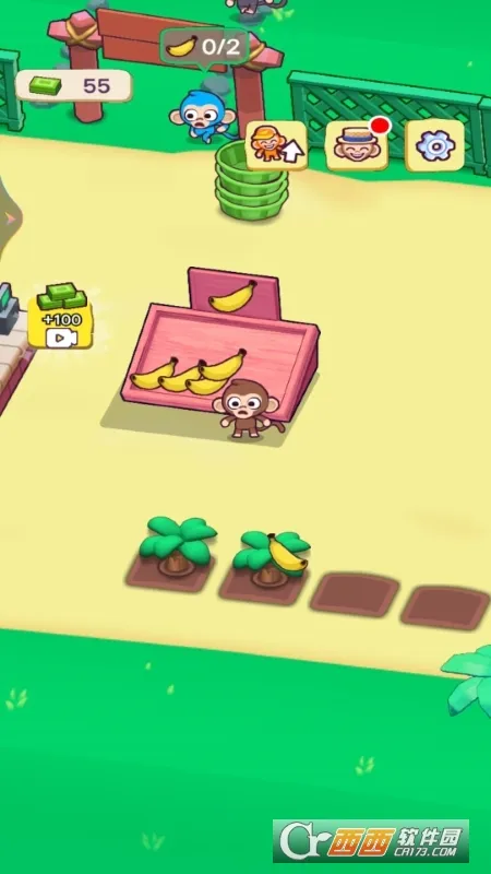 2. **特色玩法**:游戏特色丰富。能操控货架位置改变销量,根据实际灵活调整经营方案,自主种植香蕉树节省成本。可爱猴子画风营造轻松欢乐氛围,玩家还能自由调整商品定价吸引顾客。