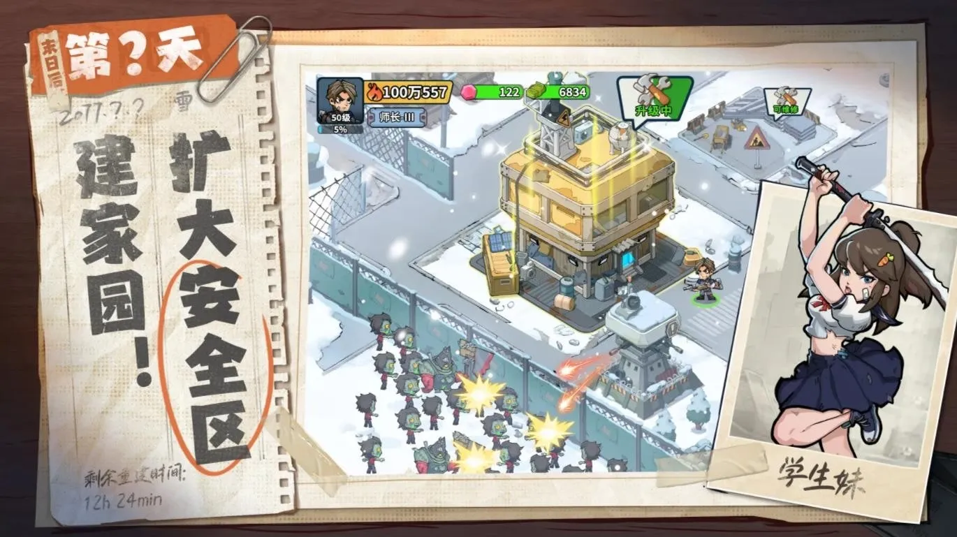 1. 游戏以放置玩法为主,玩家化身为幸存者小队队长,在末日后世界探索冒险,战斗解救幸存者壮大队伍,打造安全基地。
