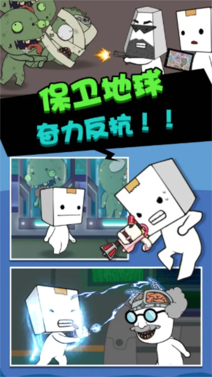 9. 可爱纸盒人身处危机小镇,要解锁使用道具,巧妙躲避僵尸。