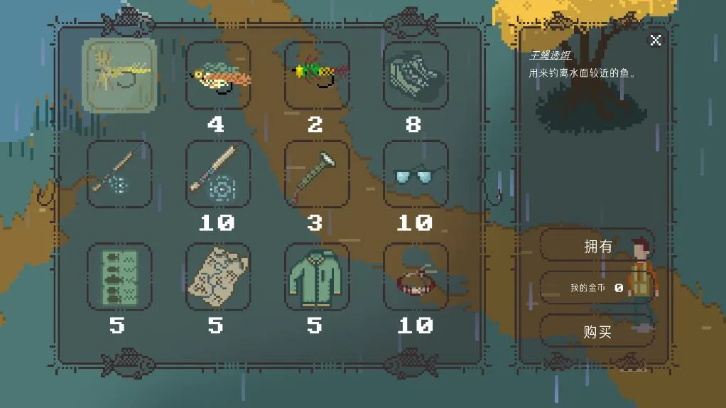 3. 钓具策略搭配机制有趣,提供三大类钓具,对鱼类吸引力与天气适应性不同,玩家需根据多种条件选择最优组合,策略性强。