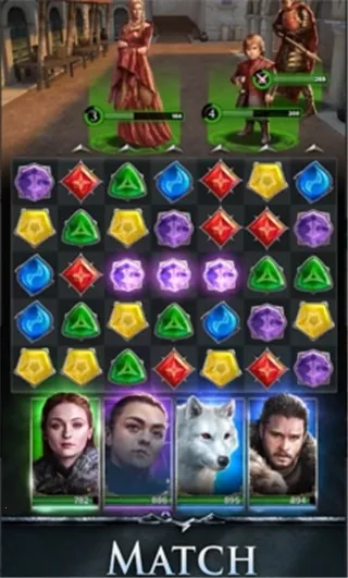 4. 技能连锁爽快感:琼恩雪诺的长爪斩击、丹妮莉丝的龙焰吐息等技能配合宝石连锁反应,战斗节奏感十足。