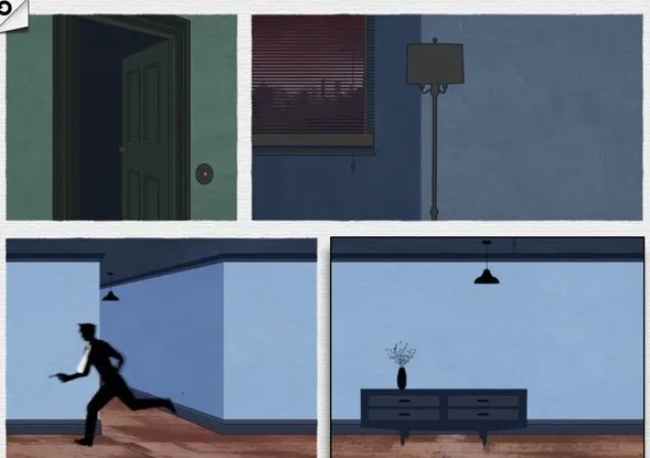 如下图所示调转图片位置,当警察开枪射击的时候,主人公飞身一跃,桌子侧翻在地挡住了子弹,主人公便可以趁此机会跳窗逃走!正字啊看小编此篇致命框架攻略的你是不是也被主人公矫健的身姿所折服!